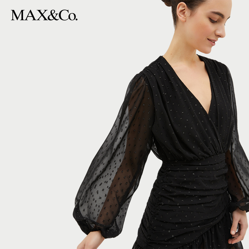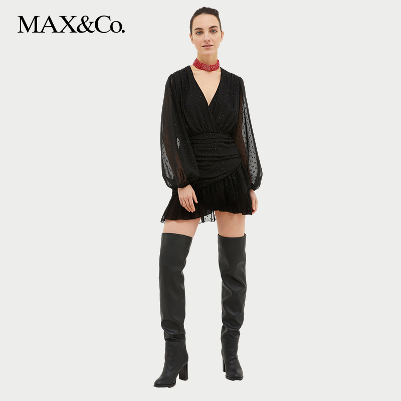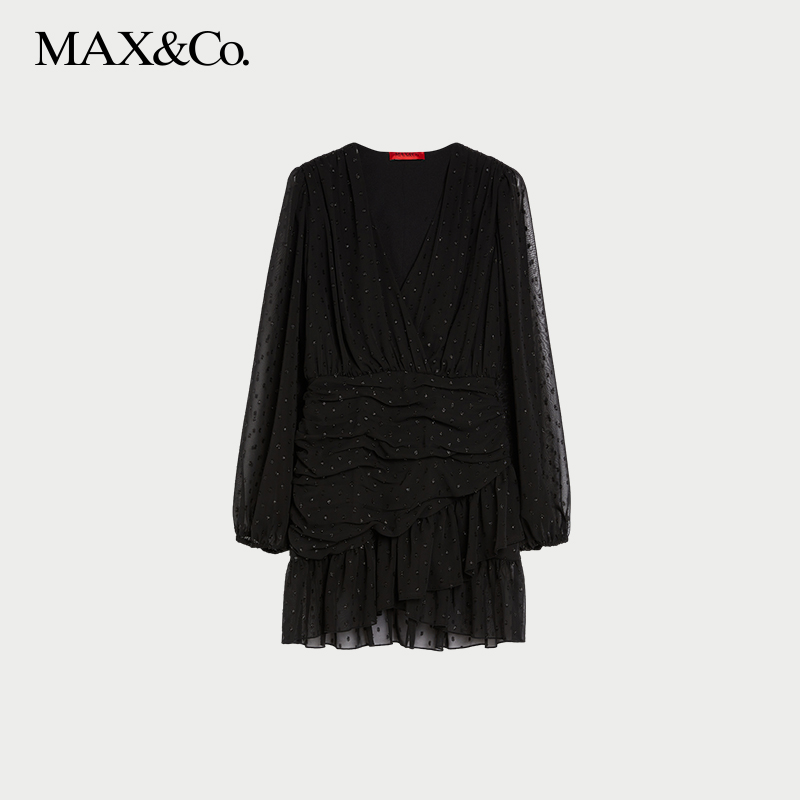 赫本风法式 太平鸟长袖 修身 中长款 船领收腰褶皱连衣裙女25春新款