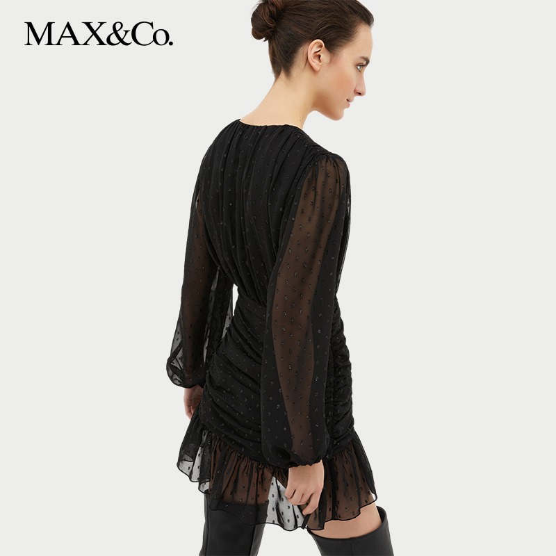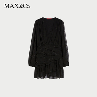 新款 裙女2025年秋季 钉珠木耳边显瘦连衣裙子 衬衫 预售黑色纯棉长袖
