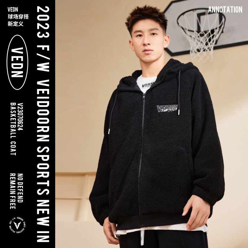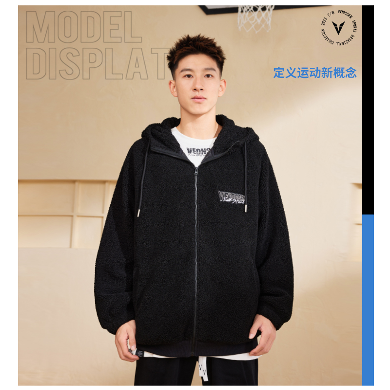 维动诠释摇粒绒连帽运动服外套长袖 立领针织休闲女 卫衣男秋冬开衫