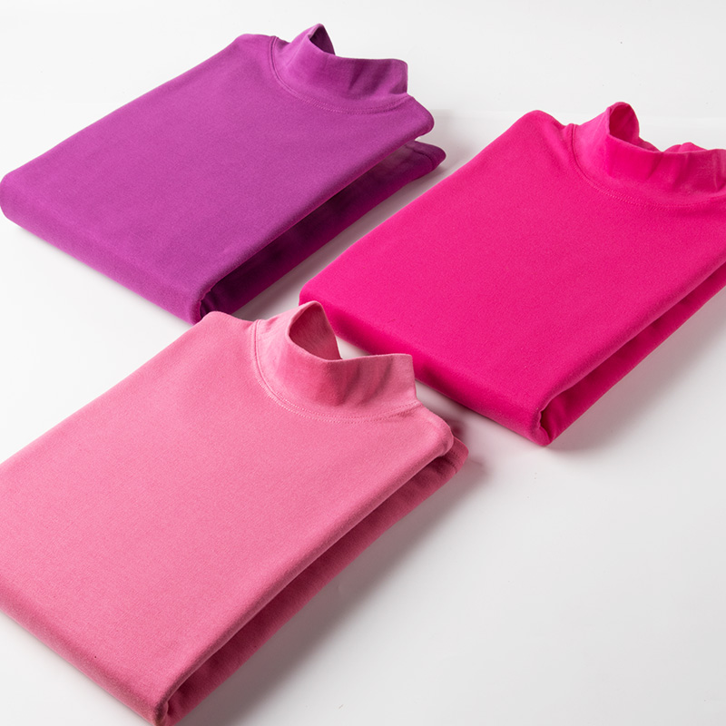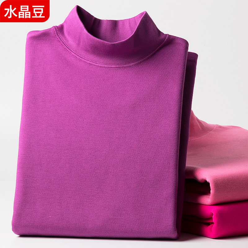 打底 中老年人衬衣长袖 半高领秋衣女单件上衣妈妈纯棉毛衫 内衣套装