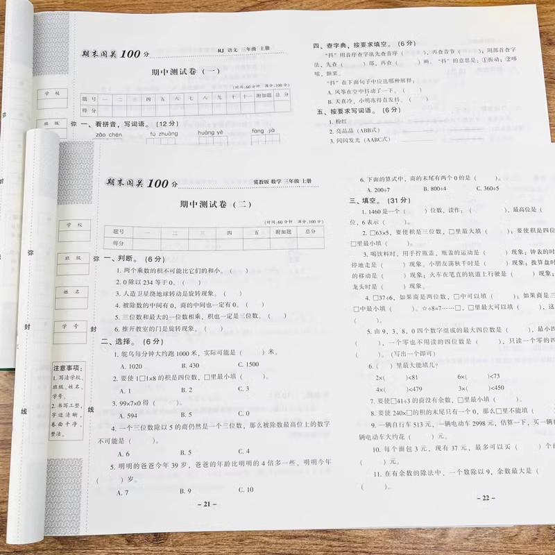北师大版 同步训练单元 冀教版 RJ版 测试期中期末闯关100分 苏教版 小学一二三四五六年级试卷上册下册语文数学英语人教版