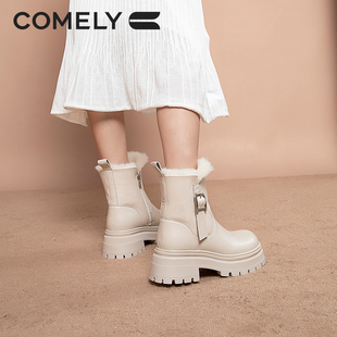 康莉加绒加厚保暖雪地靴女冬季 皮毛一体圆头厚底短靴子 新款
