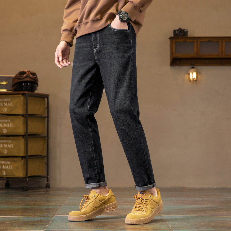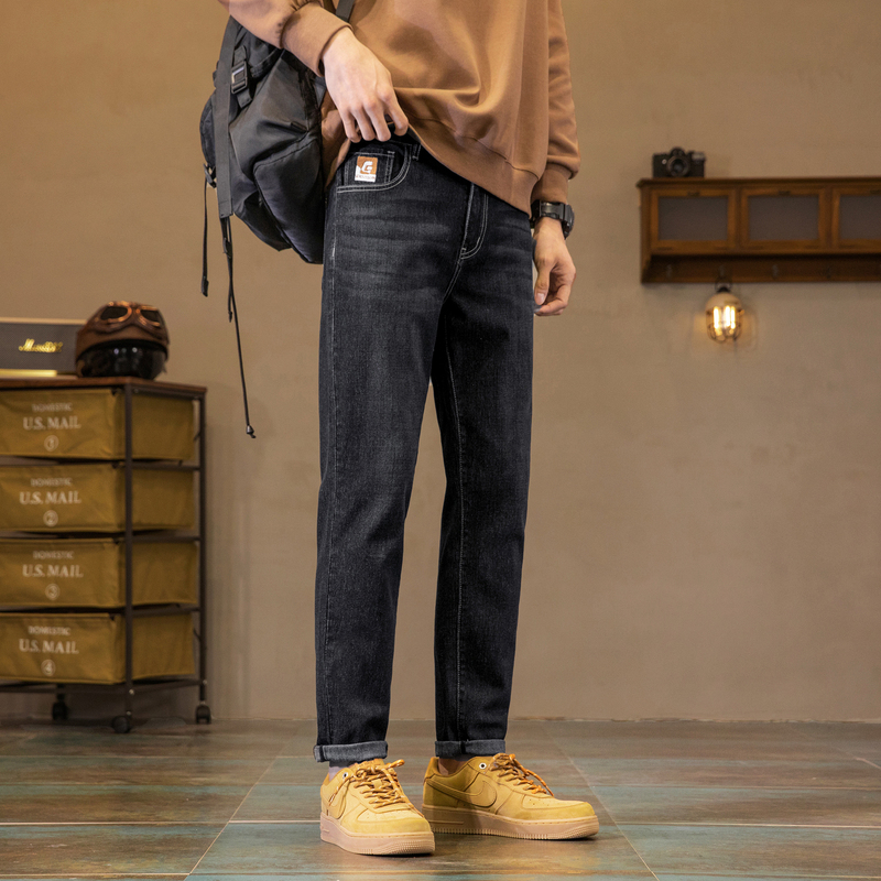 潮流百搭黑色裤 显瘦小脚裤 子男 男修身 唐狮春秋冬加绒微弹牛仔裤