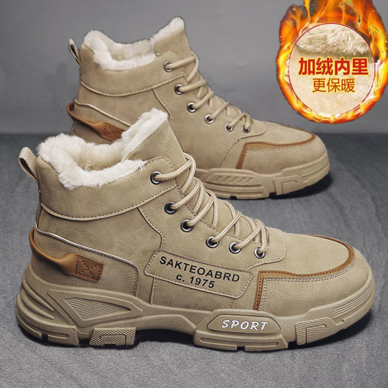 厚底休闲板鞋 内增高德训鞋 女2025秋冬女款 米色加绒女鞋 新款 运动鞋