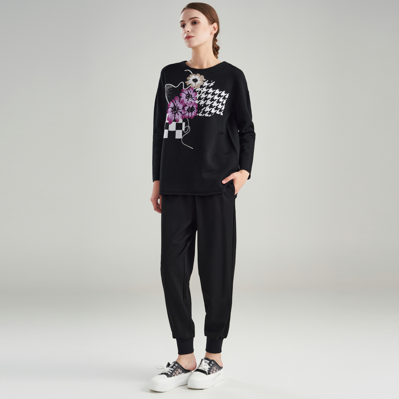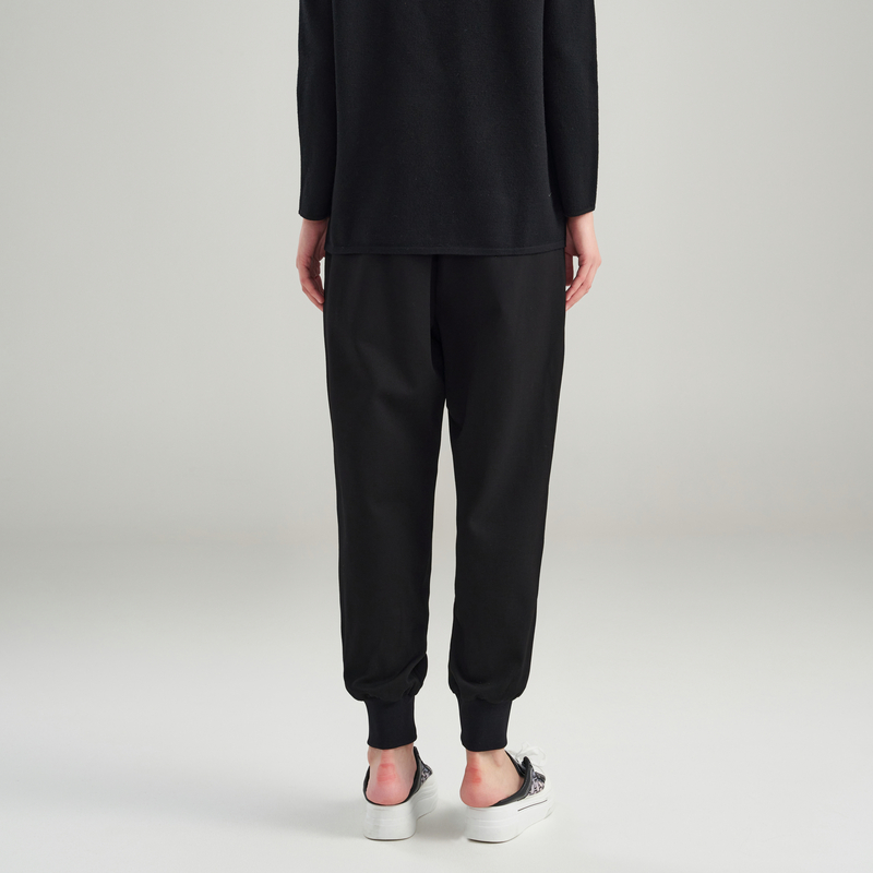 阿丹娜秋冬女裤 子流行百搭 黑色松紧腰简约日常直筒宽松罗纹长裤