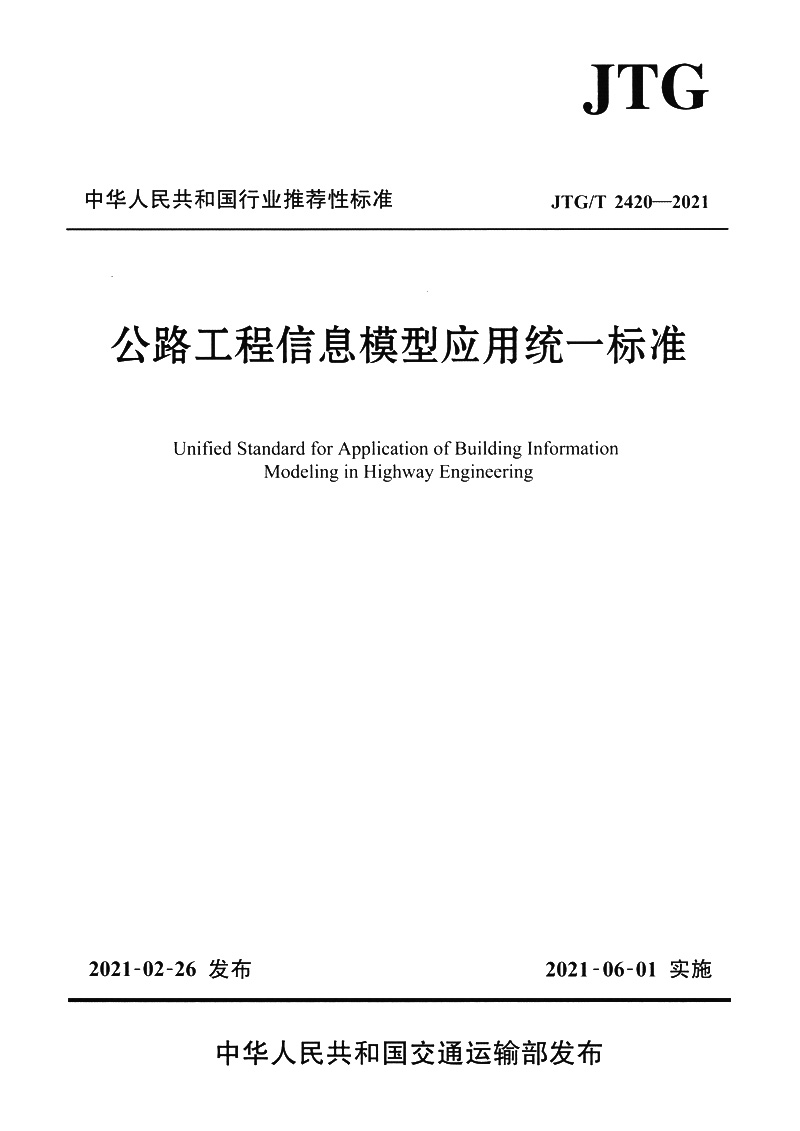 2420—2021 JTG 公路工程信息模型应用统一标准
