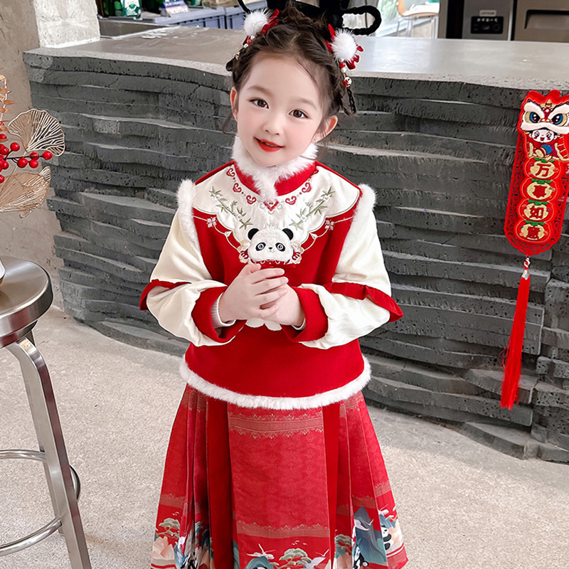 两件套红色喜庆 拜年服套装 巴拉妮琪balaniqi童装 女童秋冬2023新款