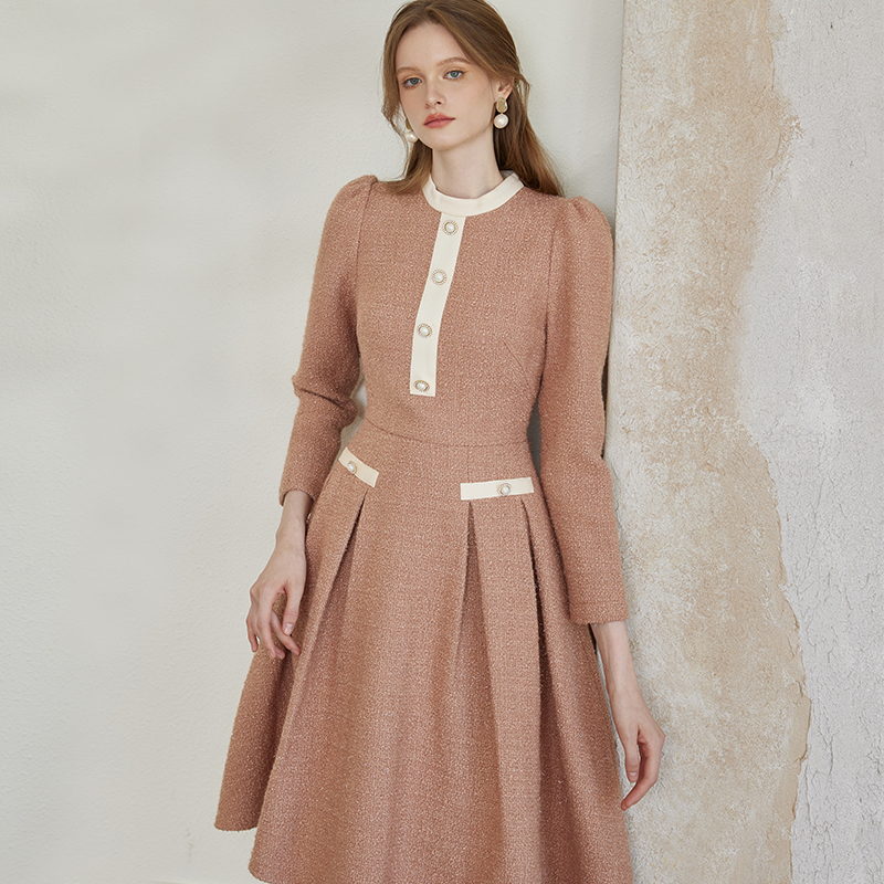 新款 朗姿高领收腰轻礼服连衣裙小香风女2025年冬季 免定金