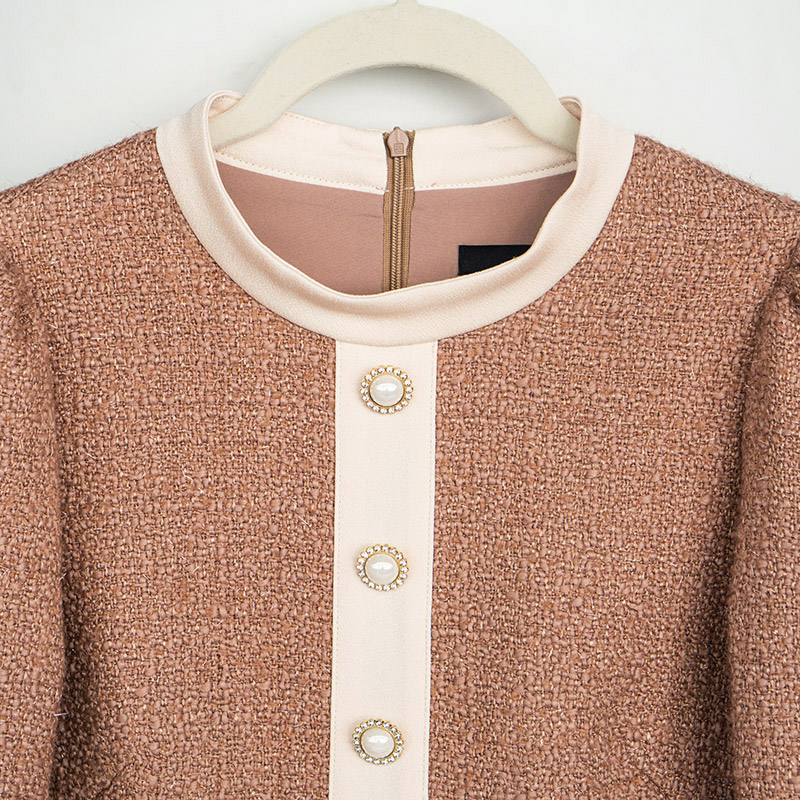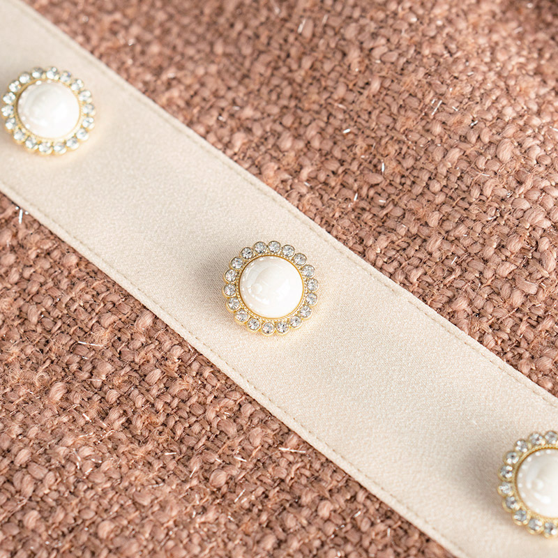 茗思重要场合连衣裙2025秋装 名媛钉珠减龄显瘦粉色小香风裙子 新款
