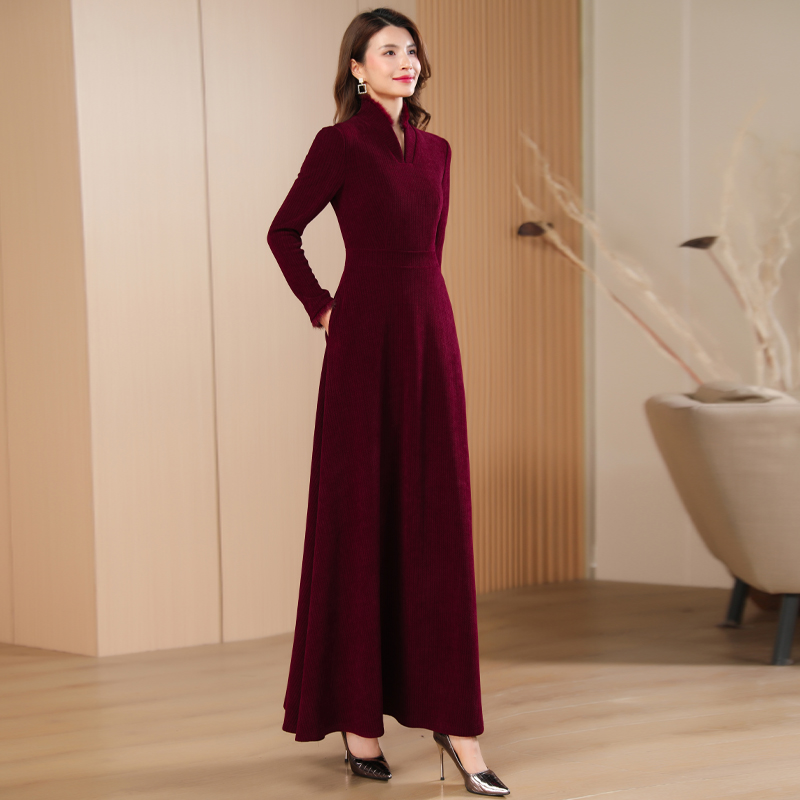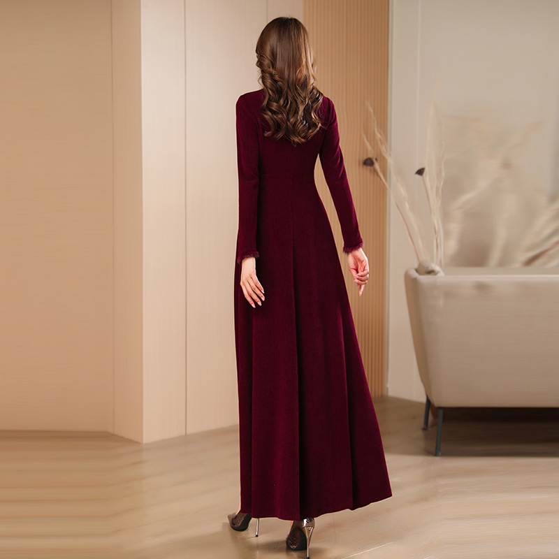 酒红长款 女气质收腰显瘦高级感喜婆婆长裙976 秋冬连衣裙2025新款
