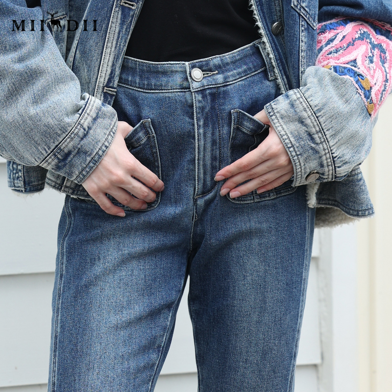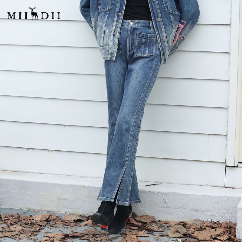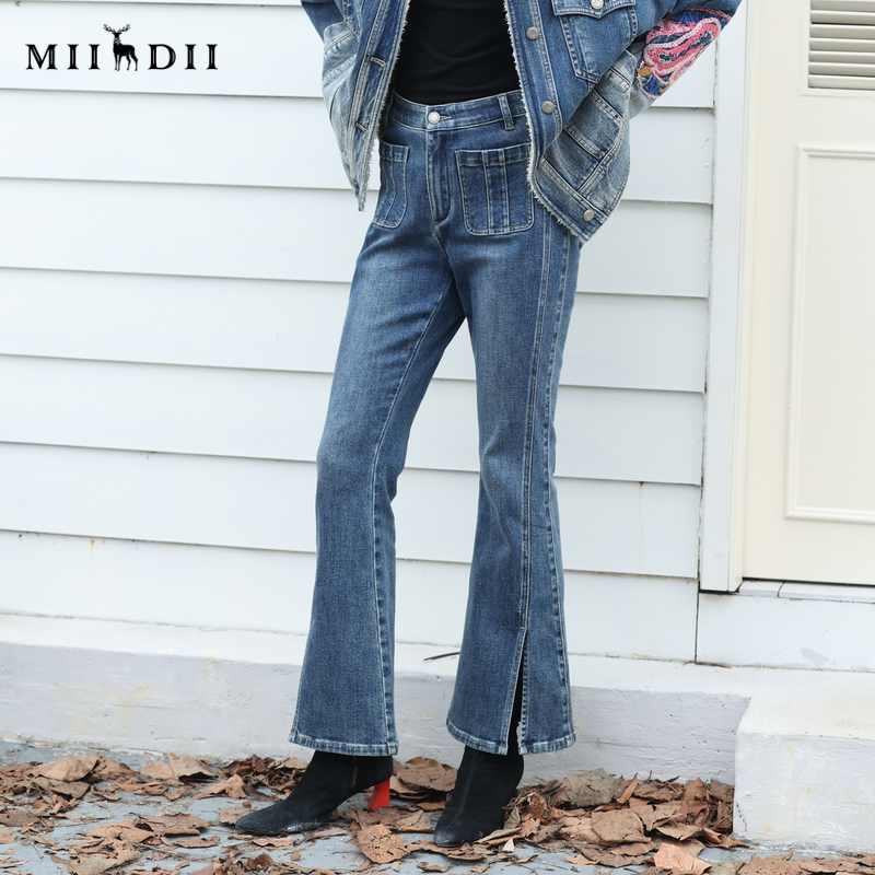 234MK1520 复古高腰百搭磨毛开叉长裤 谜底牛仔喇叭裤 女冬新品
