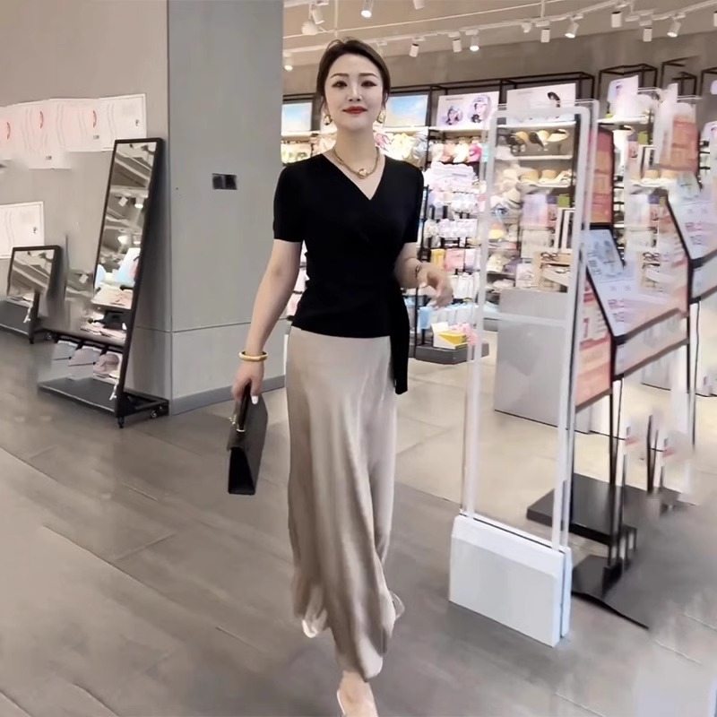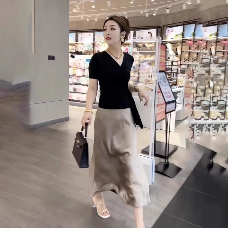 黑色T恤修身 高级时尚 短袖 裙女夏季 包臂半身裙气质两件套 休闲套装