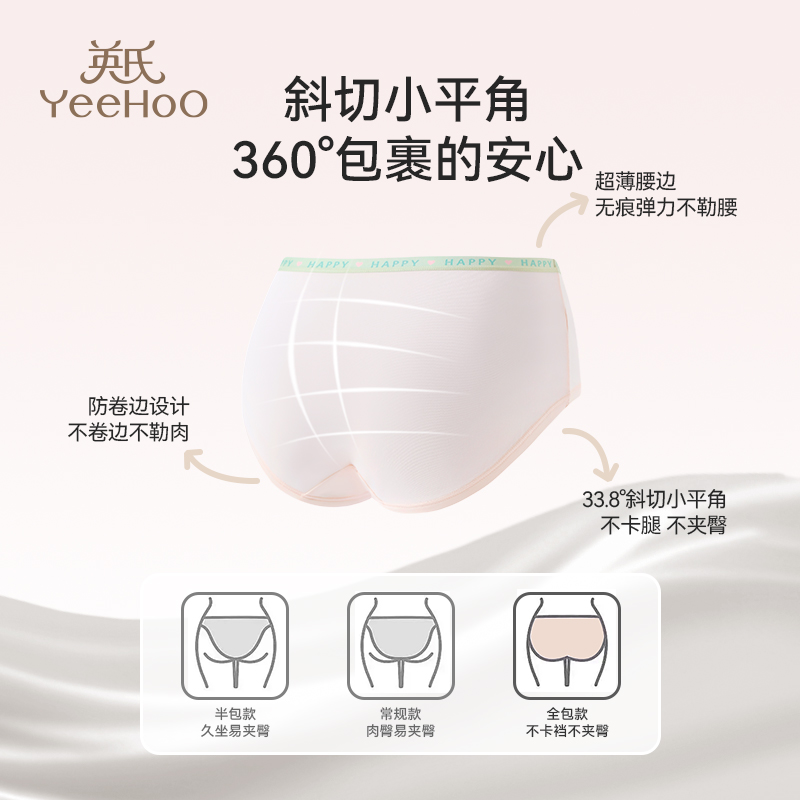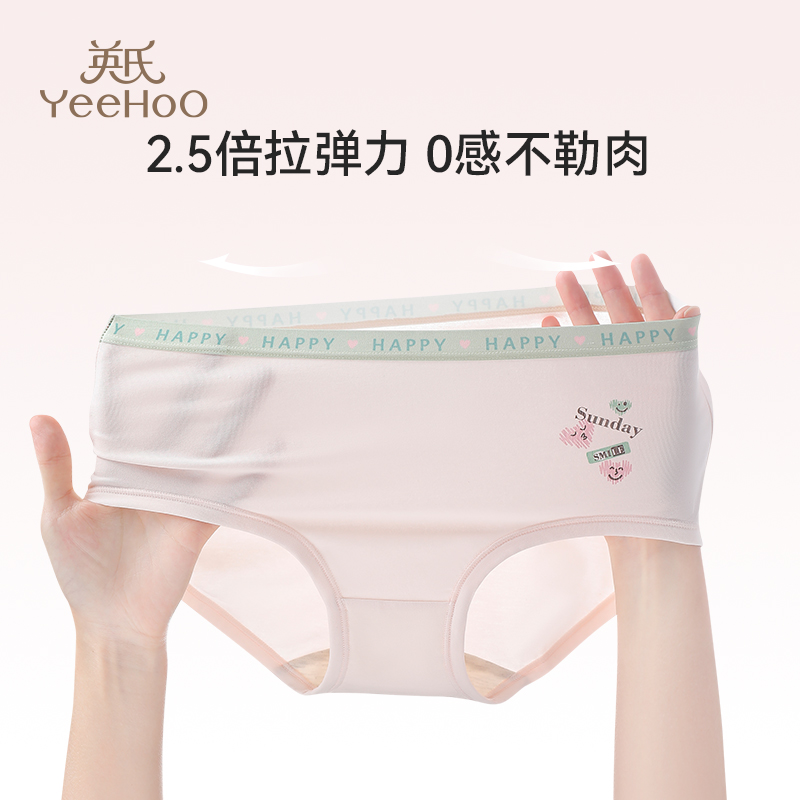 ubras纯棉内裤 头 女100%棉加长抗菌裆透气无痕中高腰三角少女短裤