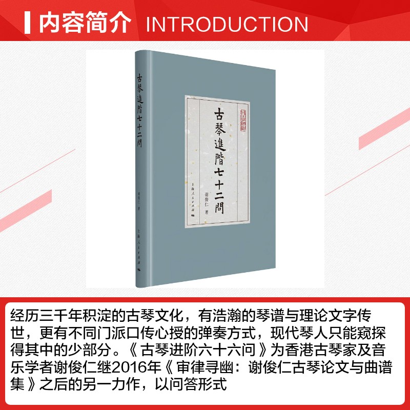 音乐 新 上海人民出版 谢俊仁 社 图书籍 著 新华书店正版 古琴进阶七十二问 艺术