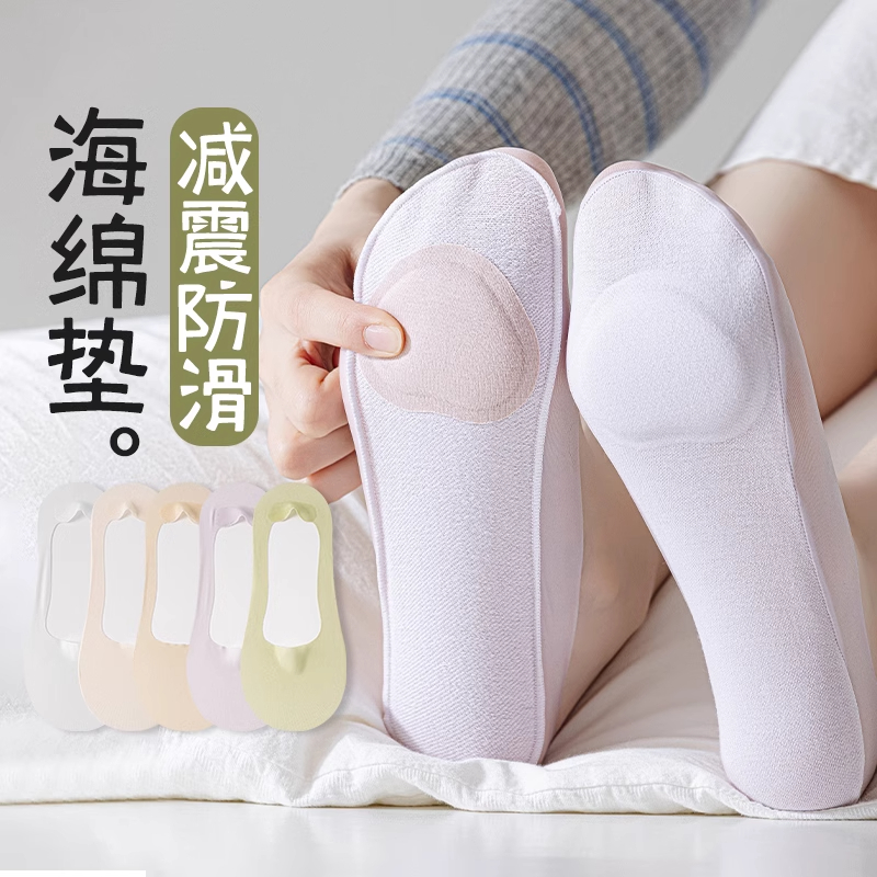 带棉垫防滑不掉跟短袜子女浅口隐形袜配高跟鞋 冰丝船袜女夏季 薄款