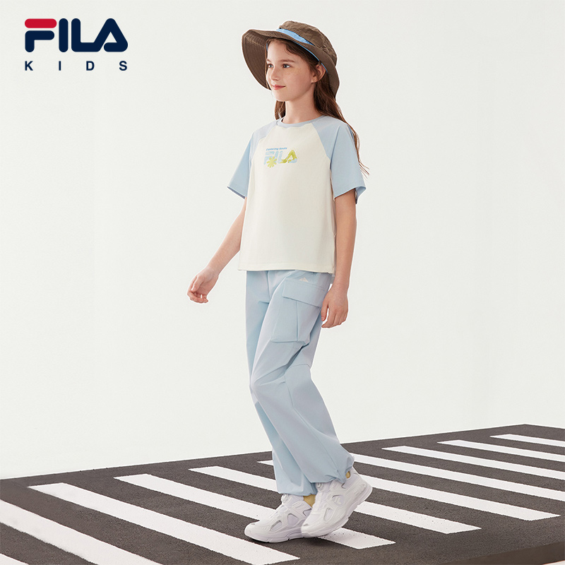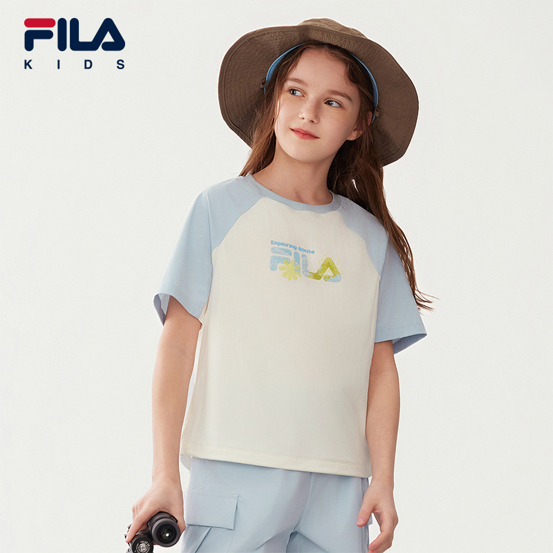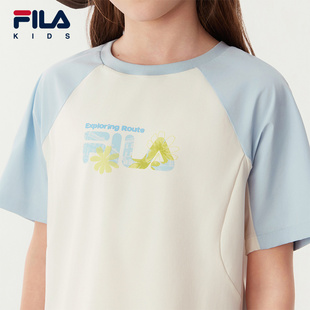 凉感 女大童透气短袖 FILA斐乐儿童童装 新款 T恤 上衣2025年秋季