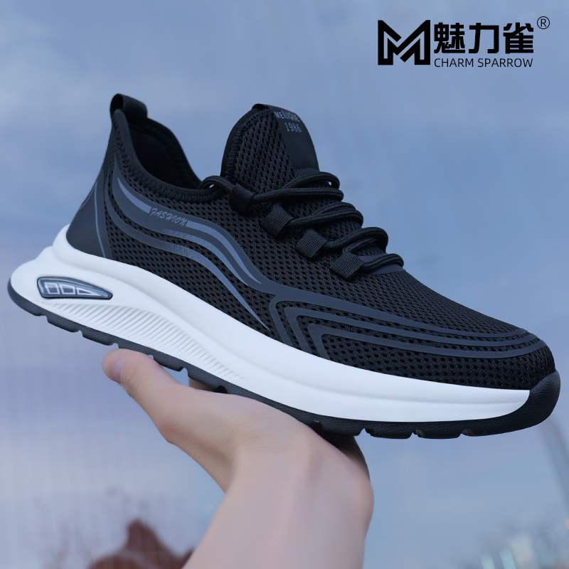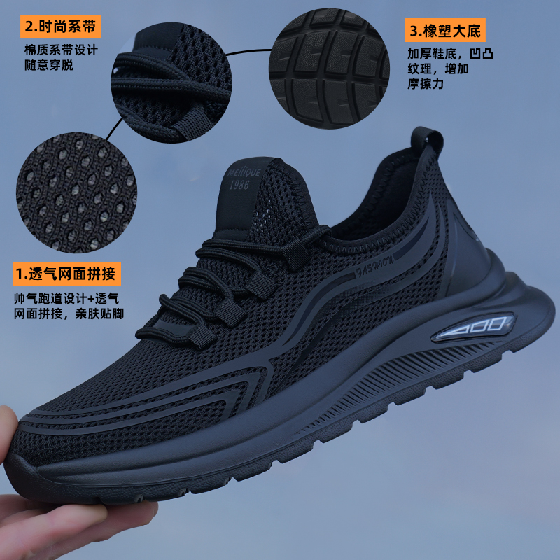 软底防滑百搭黑色跑步潮鞋 2025男鞋 网面运动鞋 透气防臭薄款 夏季