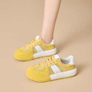 轻便小白鞋 百搭休闲运动阿甘鞋 女2025夏秋新款 真皮网面透气德训鞋