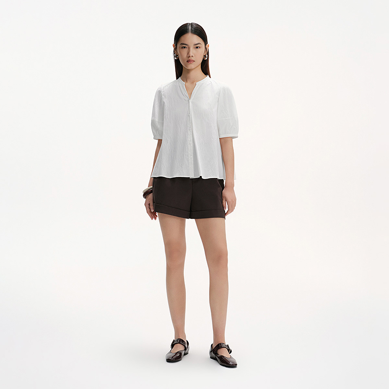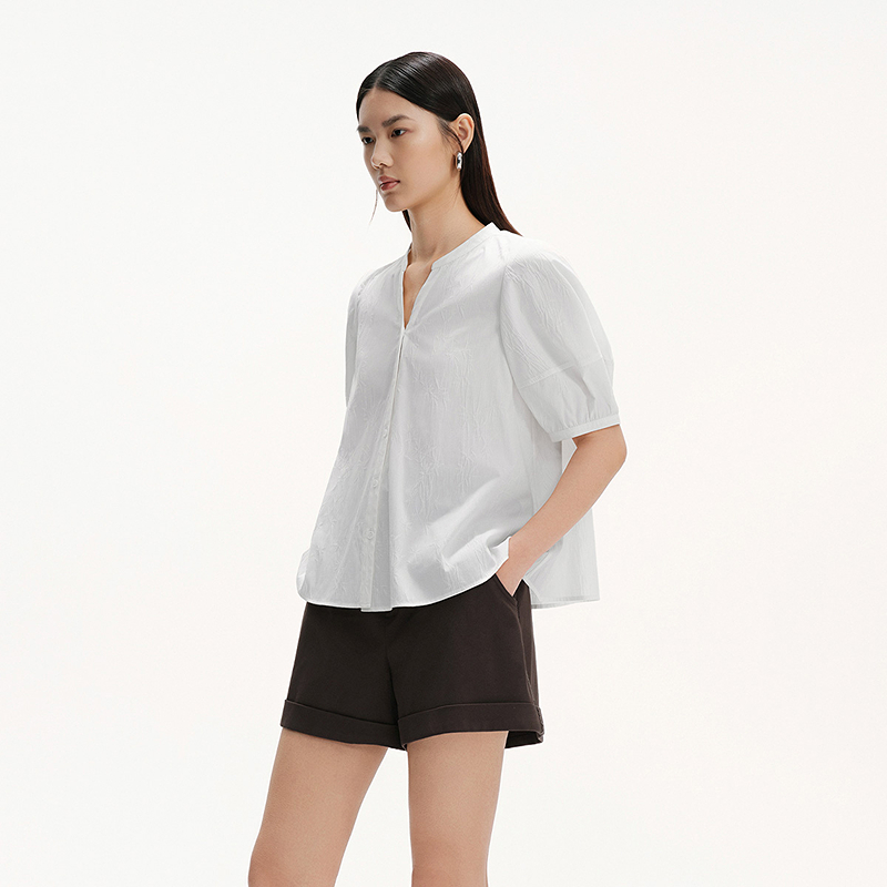 新中式 短袖 气质白衬衫 新款 衬衣BDS2CD2463 女25夏季 播商场同款
