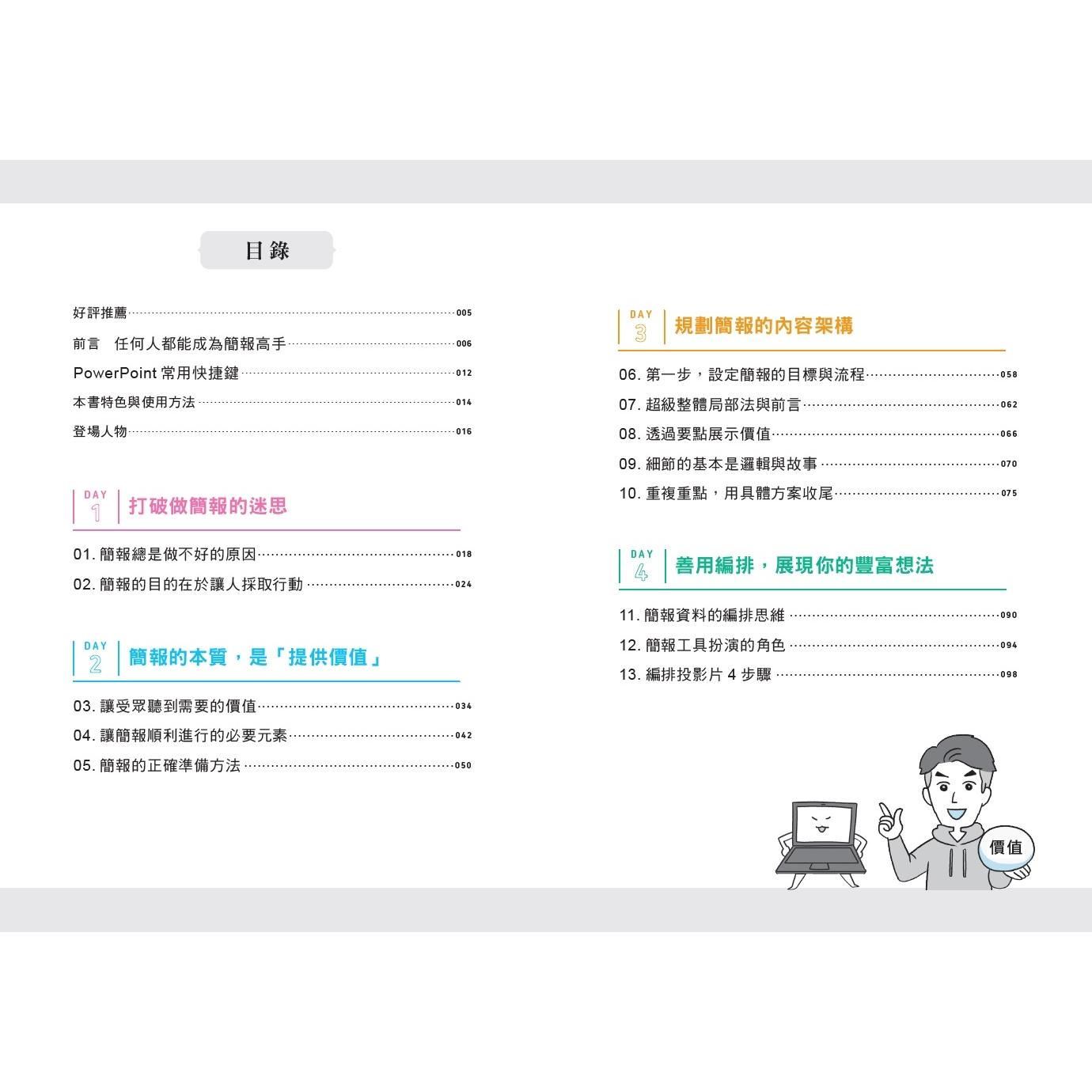 从内容 设计到呈现 迅速强化提案力 预售 采实文化 上班族必学PowerPoint简报制作术:只要7天 抢救你惨不 髙桥惠 漫画图解