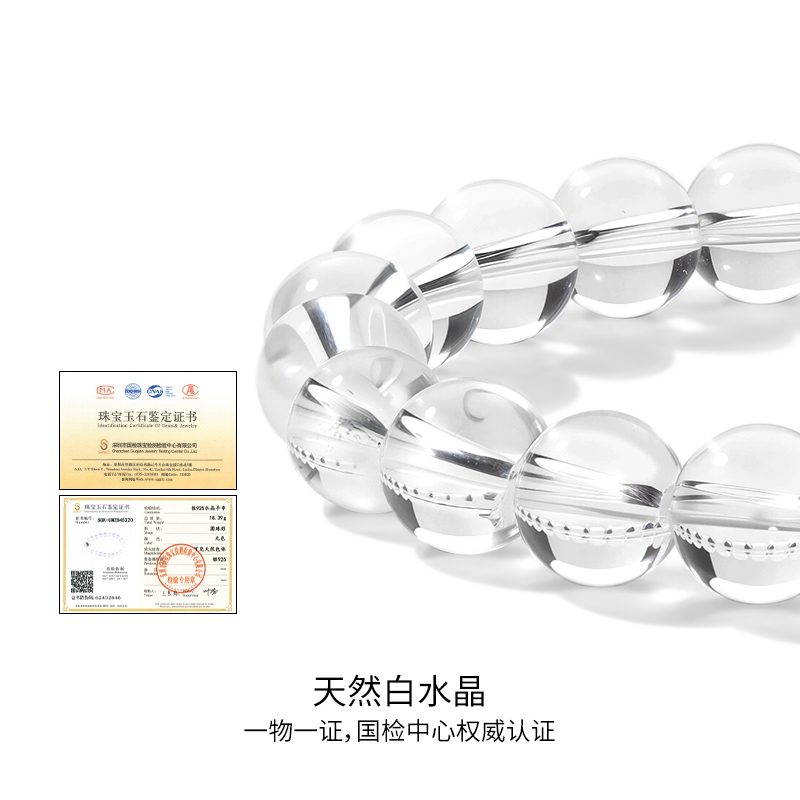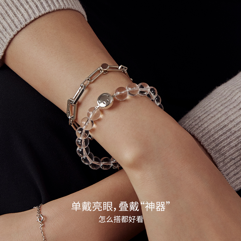 KKLUExSMILEY笑脸天然白水晶手串S925银手链百搭透明串珠珠宝礼物