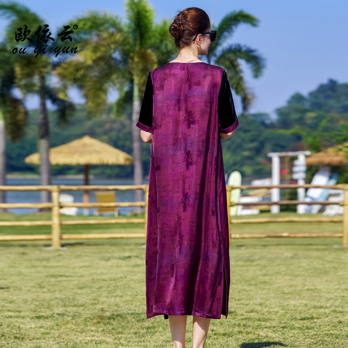 2025新款 欧依云高贵华丽气质连衣裙桑蚕丝宽松长裙子大码 显瘦夏装