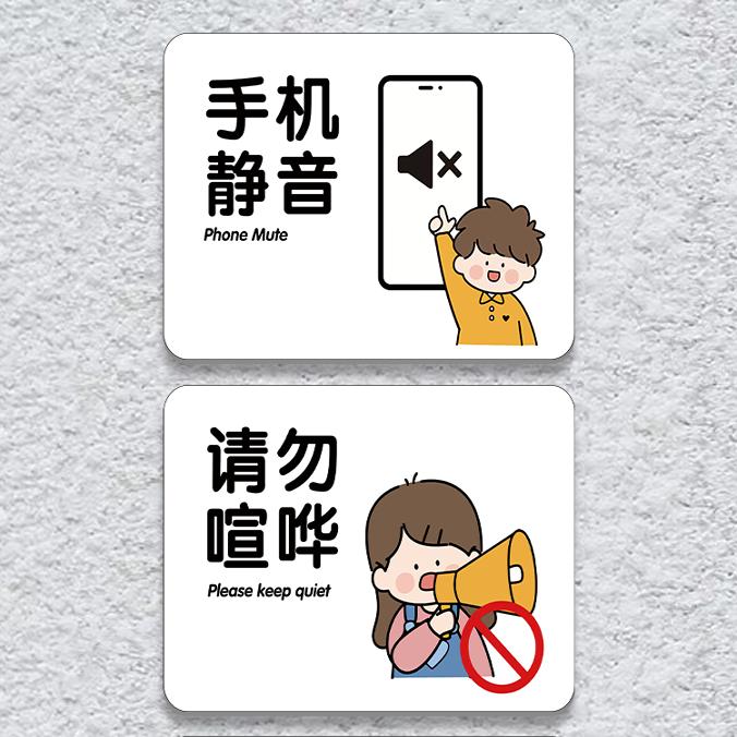 夜深人静请勿大声喧哗亚克力墙贴定制保持安静提示牌告示牌文化墙班级教室文明标语挂牌装 饰温馨提示牌标识牌