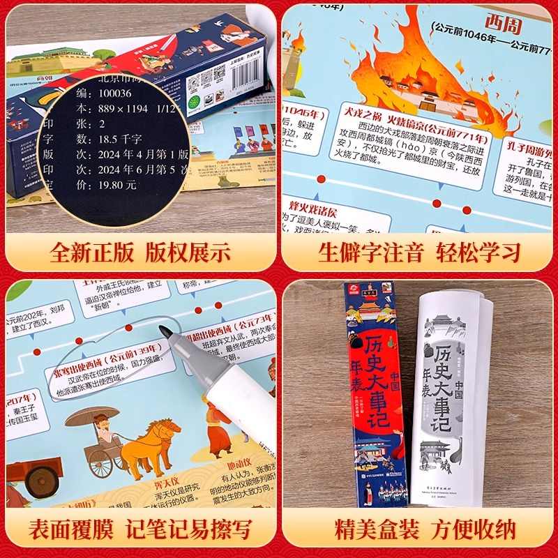 中国历史大事记年表高挂图长卷墙贴近概要时间轴年代顺序表初中小学生历史大事件思维导图速记中小学生历史基础知识 新华文轩