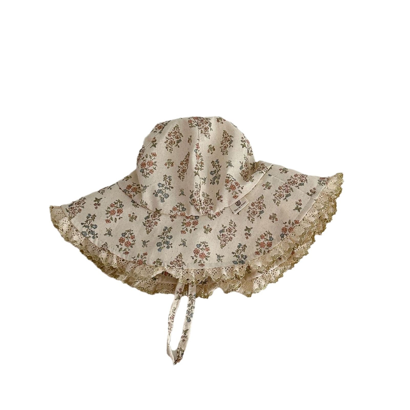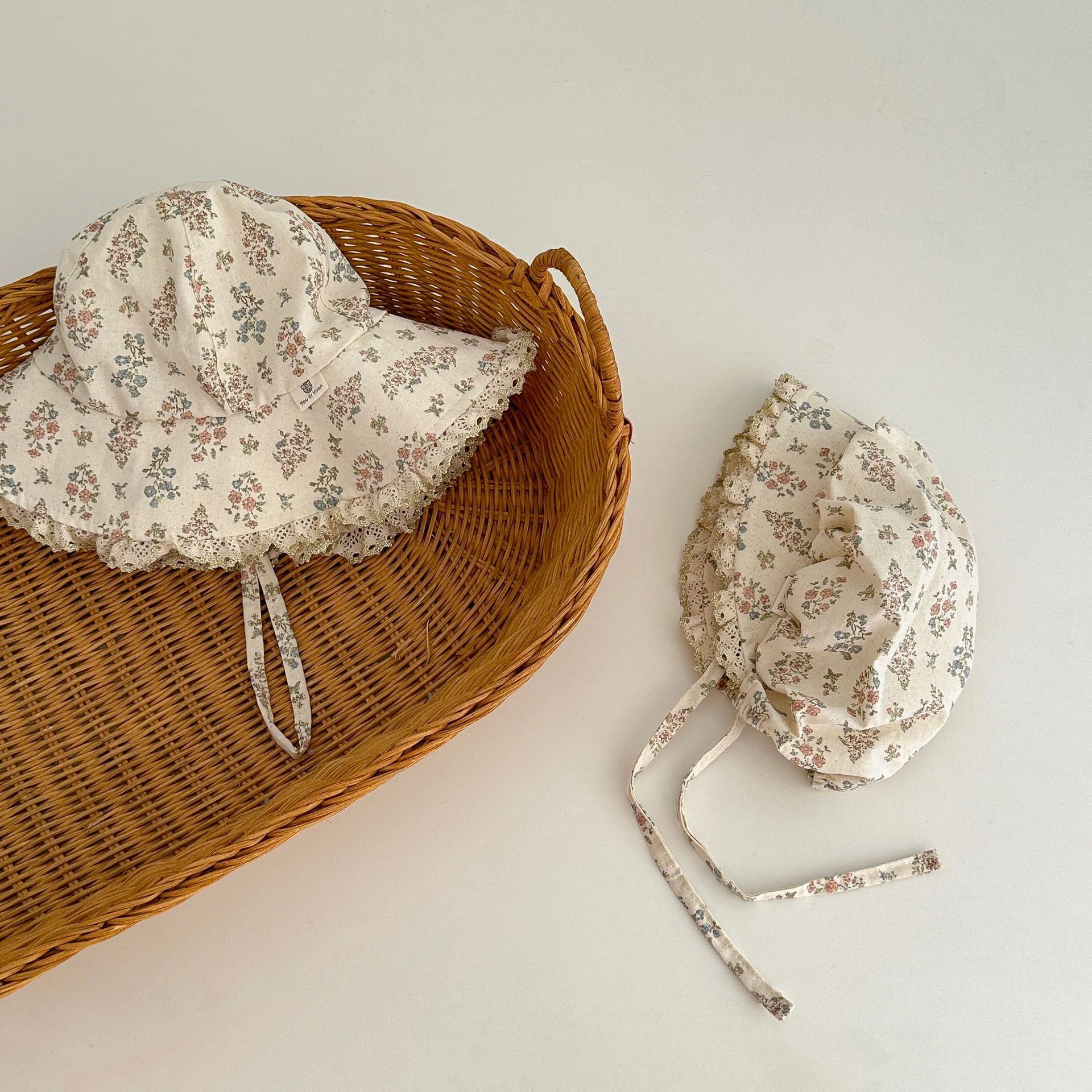 网红韩国婴儿帽子ins复古碎花遮阳女宝宝包头帽新生儿宝宝公主帽