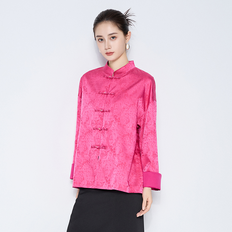 外套立领一字扣国风 玫红色提花新中式 专柜正品 马天奴2025春夏新款