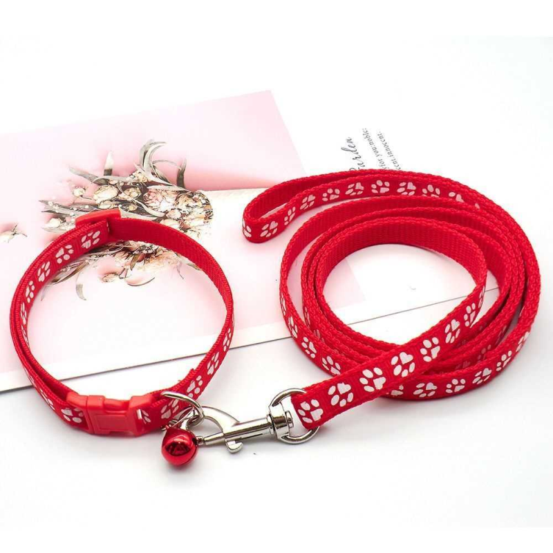 牵引绳牵引狗狗猫咪宠物遛狗项圈套装 小型脚印中小型泰迪链子绳子