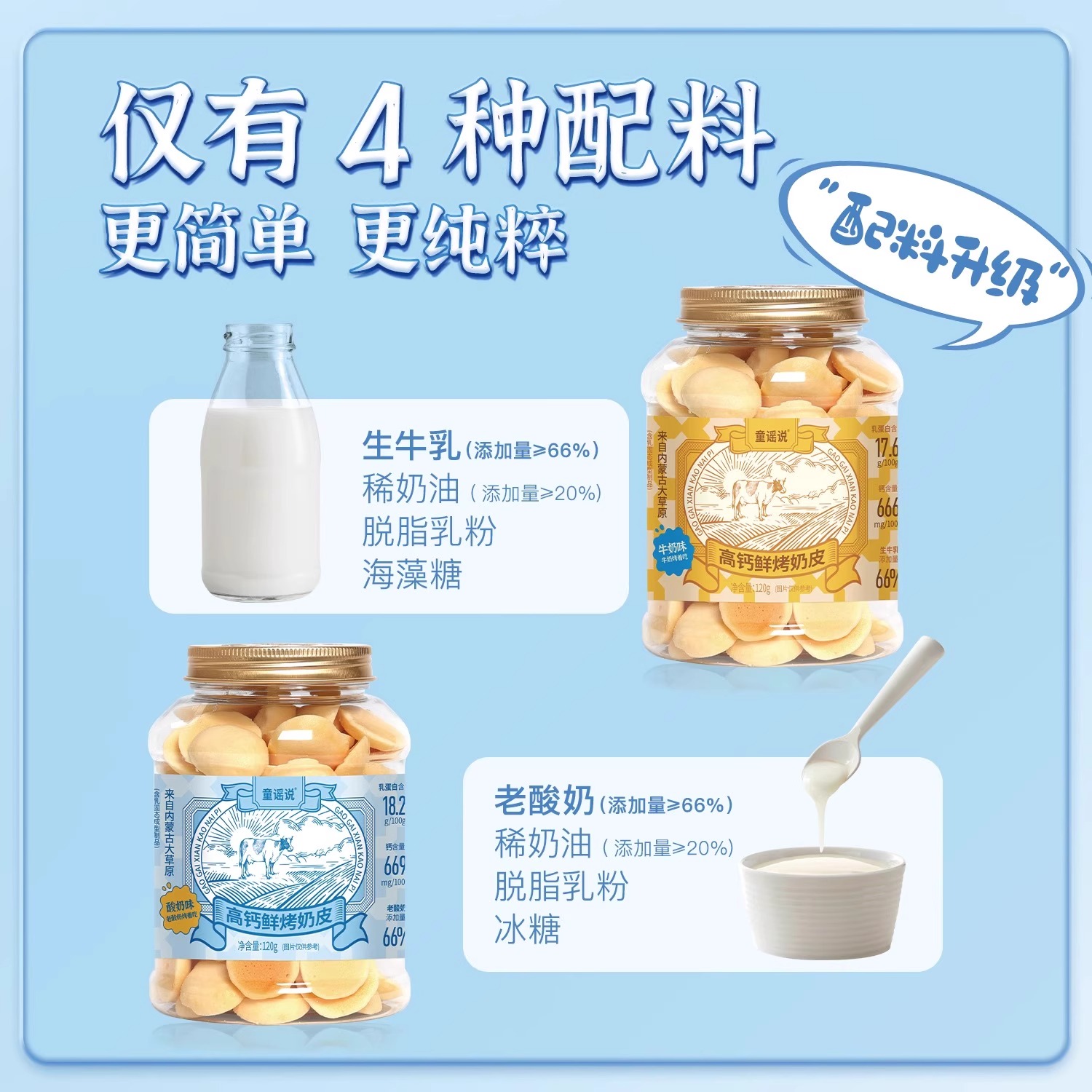 童谣说高钙鲜烤奶皮子脆片内蒙古特产奶片老酸奶味儿童休闲零食品