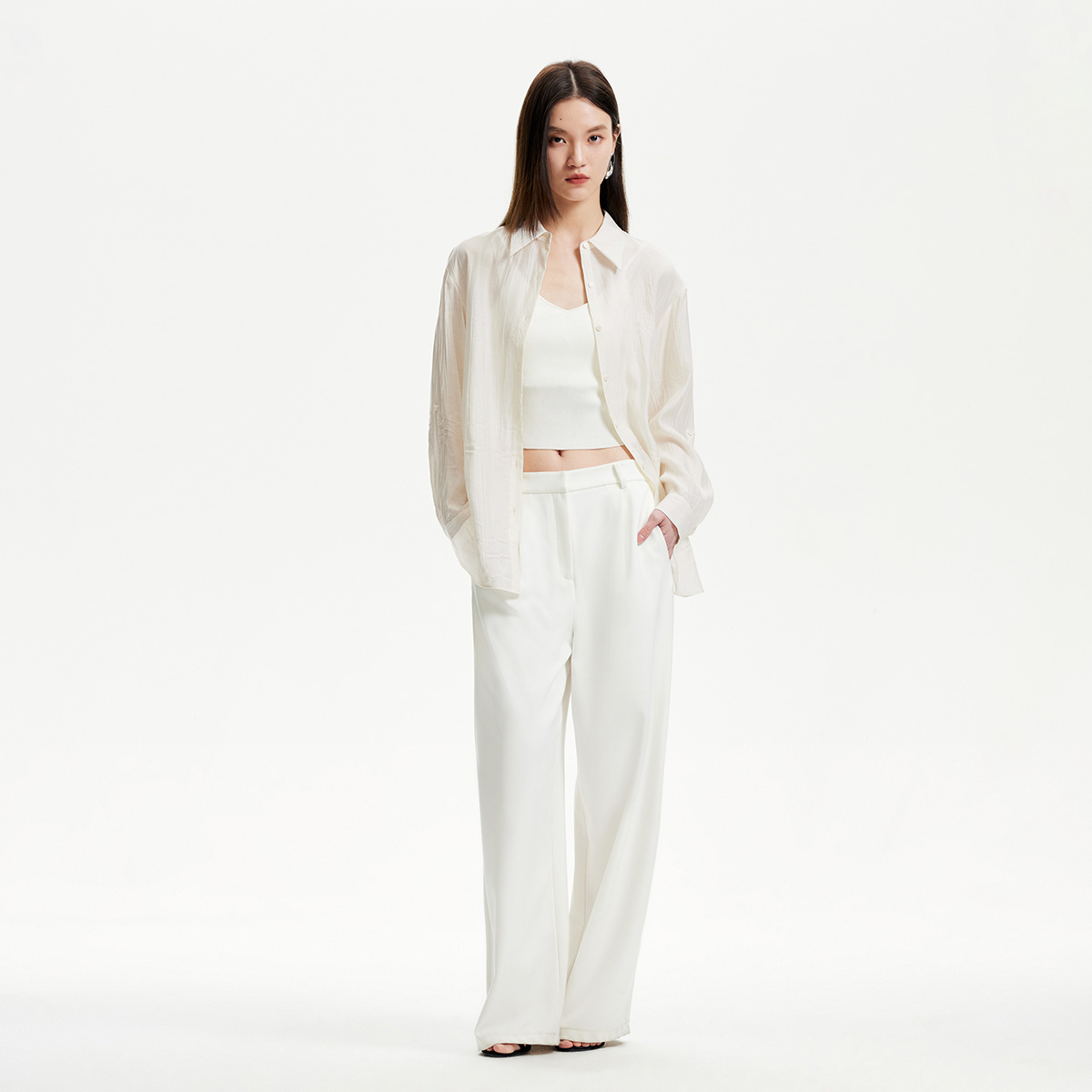 纯棉绣花上衣气质淑女刺绣衬衣 2025新款 初影杏色木耳领衬衫 女长袖