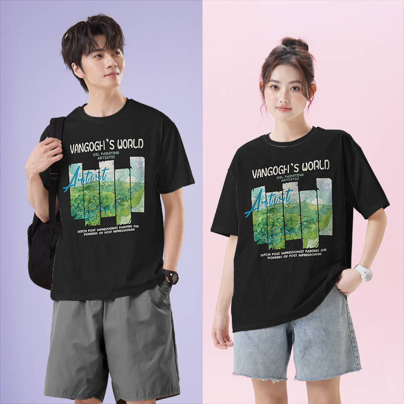 港风chic梵高麦田田野风景油画艺术短袖 无界 T恤男女圆领夏0015设