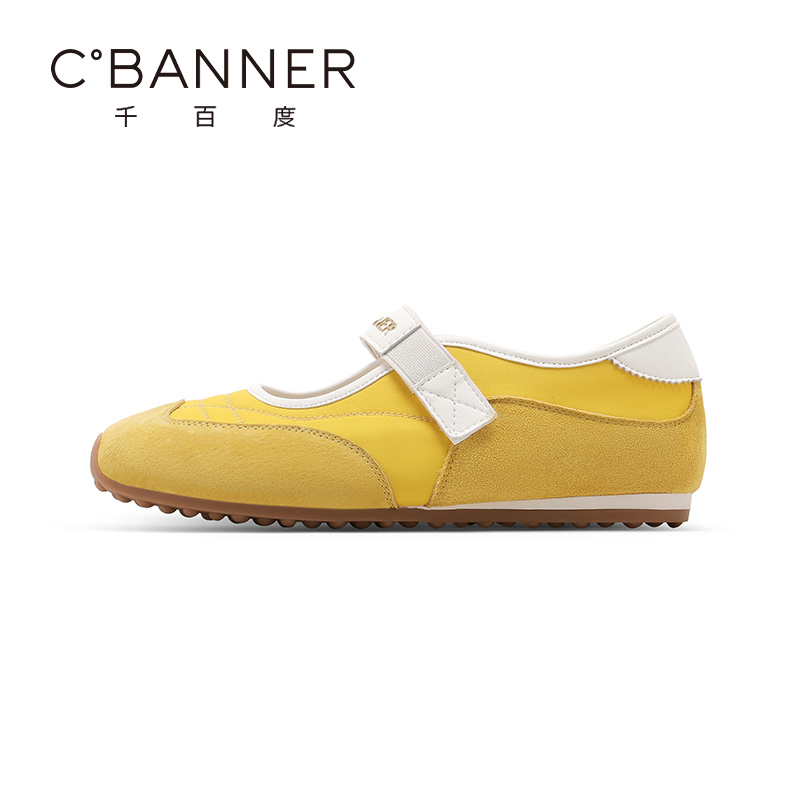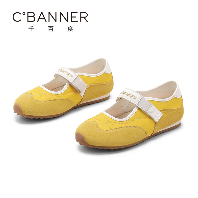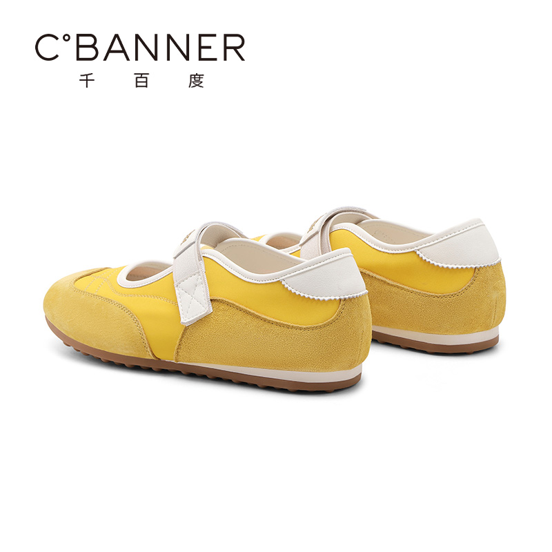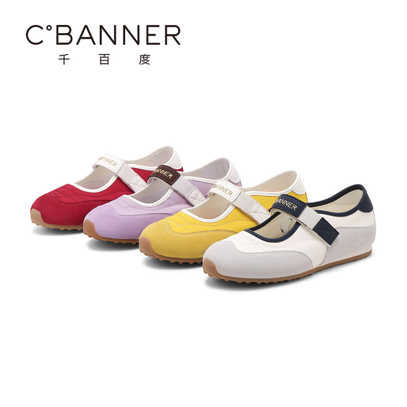 拼色板鞋 千百度休闲鞋 魔术贴一字带软底芭蕾风单鞋 新款 女2025秋季