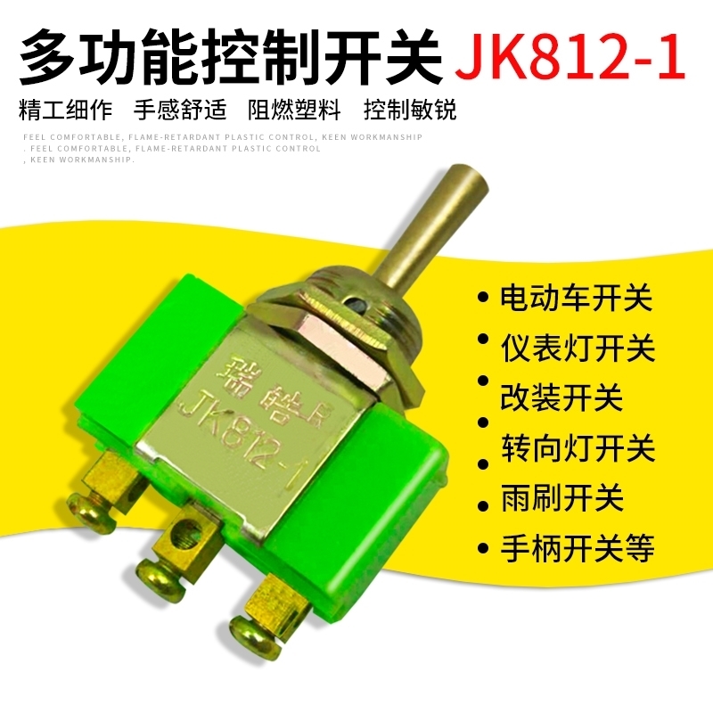 摇头摇臂拨动开关2档3脚针脚仪表灯开关转向喇叭改装 通用三脚2档