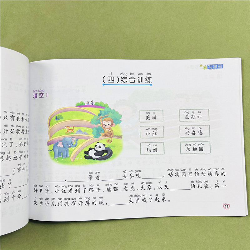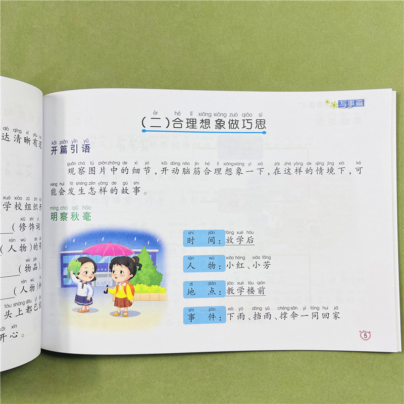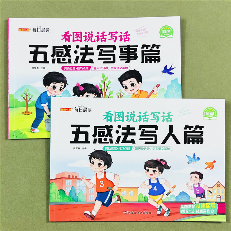 小学生一二年级看图说话写话上下学期一二年级通用写话本专项训练练习范文大全每日一练注音版 2册看图说话写话 写人写事篇五感法
