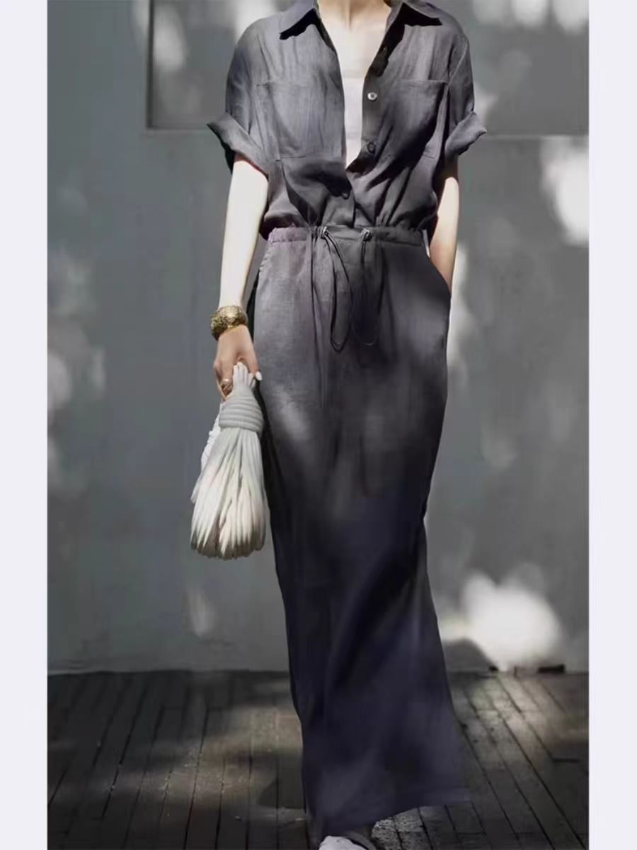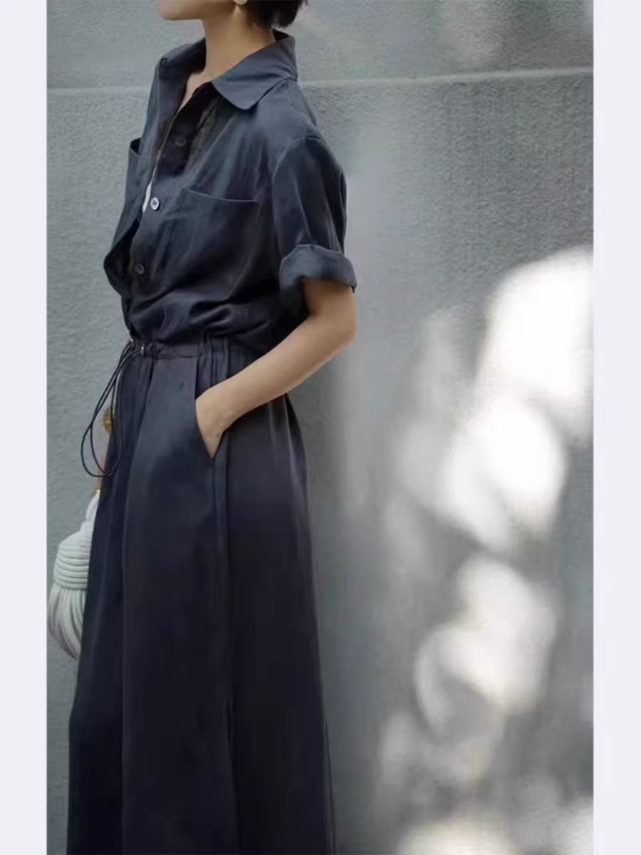 免定金 收腰衬衫 朗姿2025年秋季 黑色长裙法式 连衣裙 新款