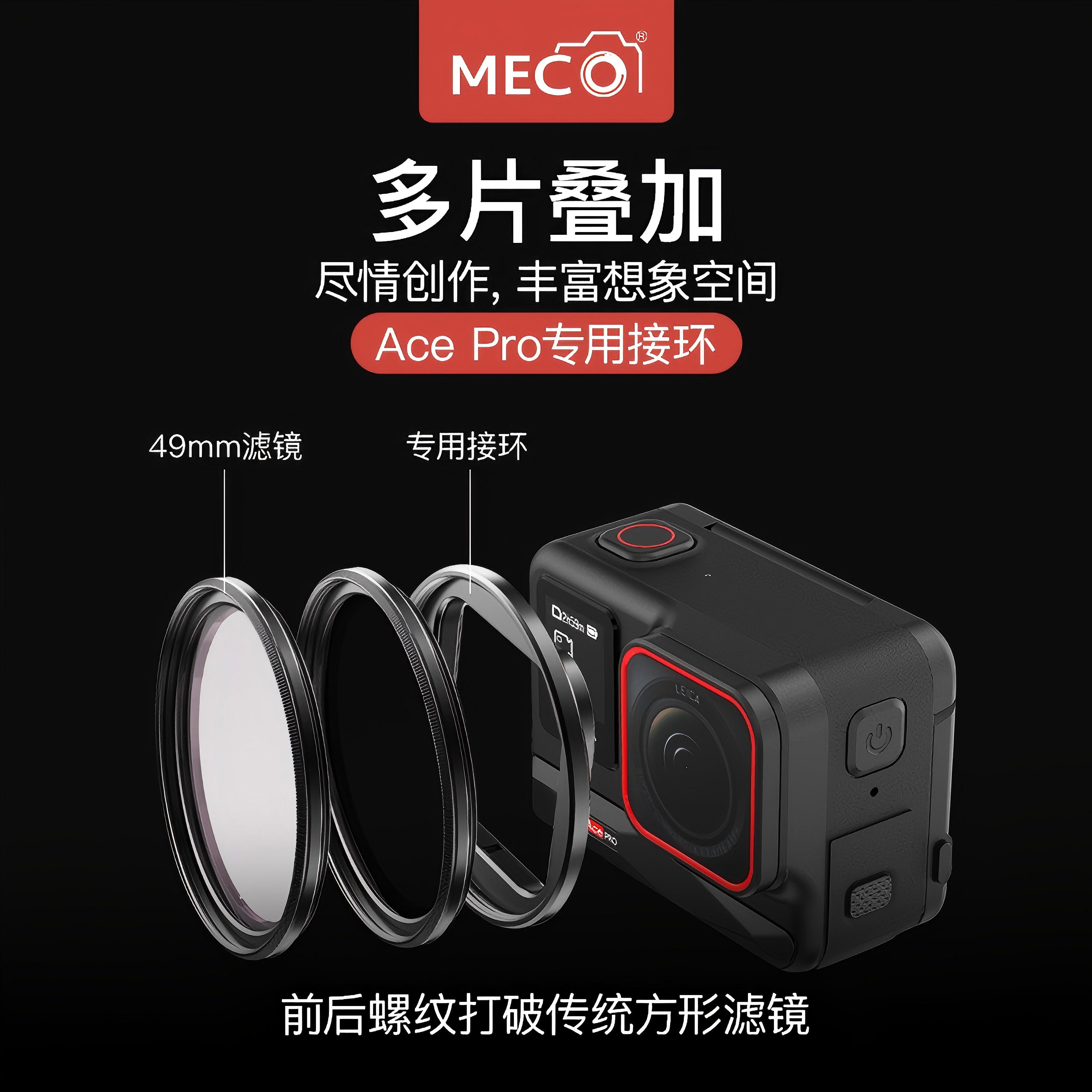 MECO美高适用影石Insta360AcePro1 2代通用滤镜转接环UV保护镜可调ND减光镜CPL偏振镜黑柔白柔焦星光镜头配件