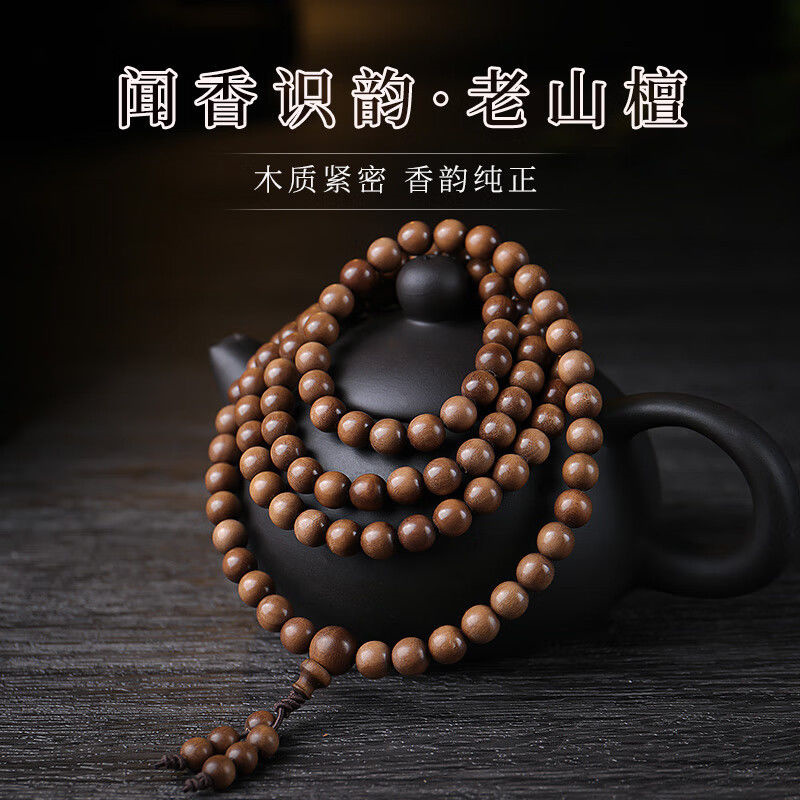 老山檀香手串108颗佛珠檀香木念珠文玩长手链女印度檀木男士 原木