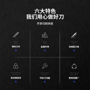 得力美工刀黑刃小刀30度雕刻刀开箱刀钨钢黑科技小型裁纸刀拆快递刀工业级不锈钢刀身合金刀片美术生专用