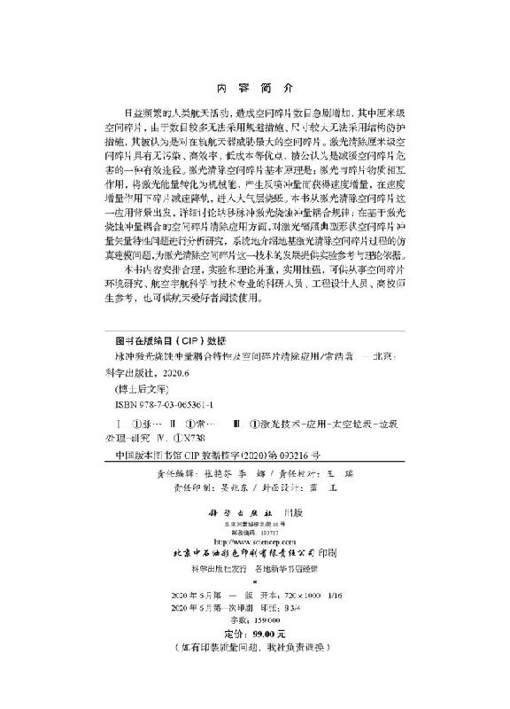 社书籍KX 脉冲激光烧蚀冲量耦合特及空间碎片清除应用常浩著9787030653611科学出版 书