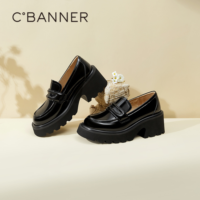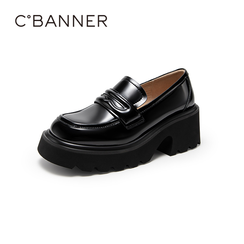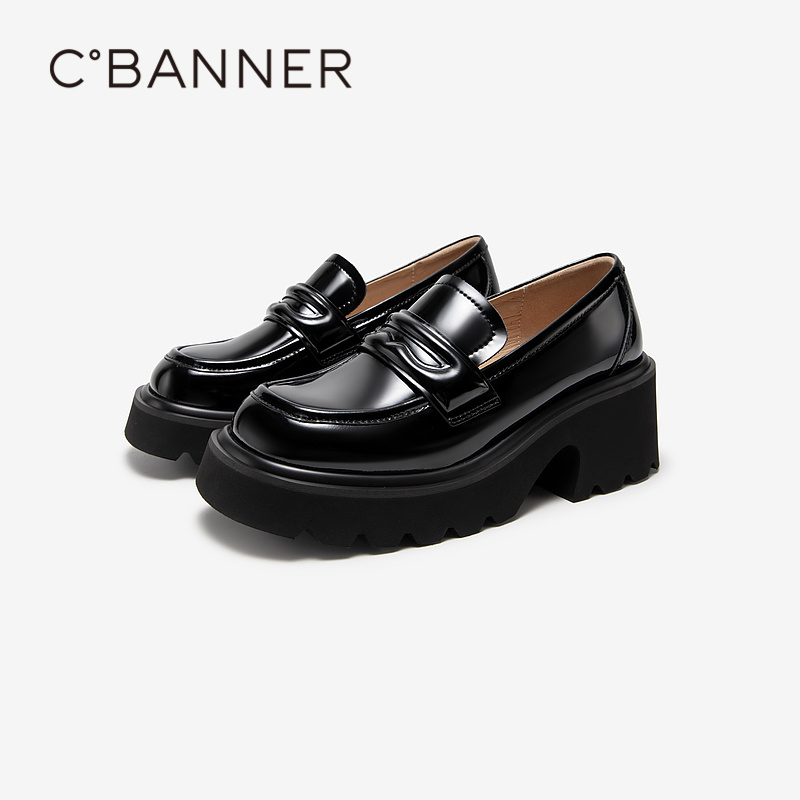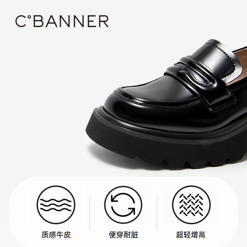 女单鞋 百思图25秋新款 英伦豆豆鞋 miu系乐福鞋 UXE01AA6 绒面羊皮鞋