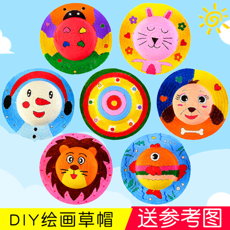儿童手工diy涂鸦草帽绘画帽子材料包幼儿园创意画画彩绘遮阳帽