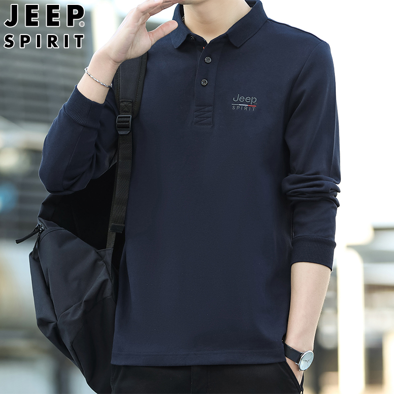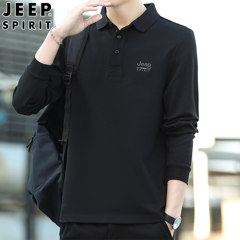 商务休闲翻领T恤上衣打底衫 JEEP吉普男士 2025春秋新款 POLO衫 长袖