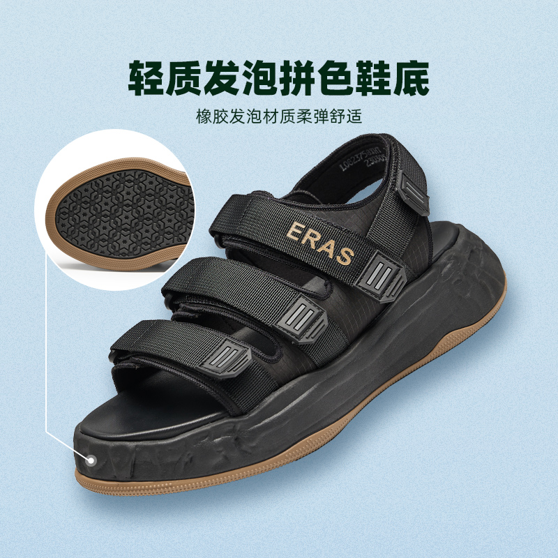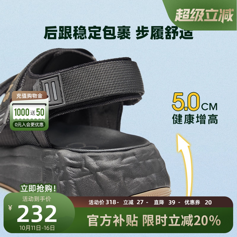 子秋季 厚底魔术贴凉鞋 新款 镂空单鞋 高哥增高鞋 户外运动沙滩鞋 男士