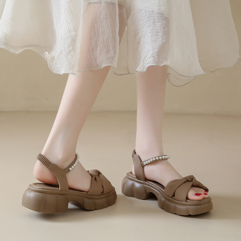 女夏季 凉鞋 2024新款 仙女风软底防滑女士时装 子 外穿法式 一字扣凉鞋