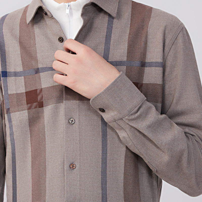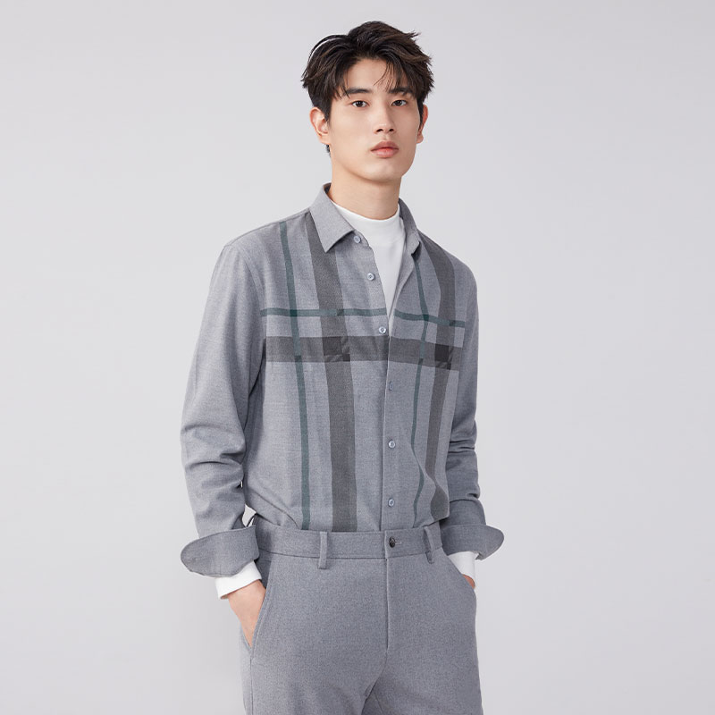 日系高级感上衣翻领男生衬衣外套A 男春秋季 班尼路S&K系列长袖 衬衫