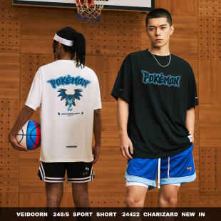 维动宝可梦联名超级喷火龙短袖 篮球训练运动上衣 投篮服T恤男美式
