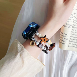 4Pro 5XPro 5pro防摔保护壳 3Pro 4X男女新耀 新复古木质小狗diy手链适用华为儿童电话手表表带5X